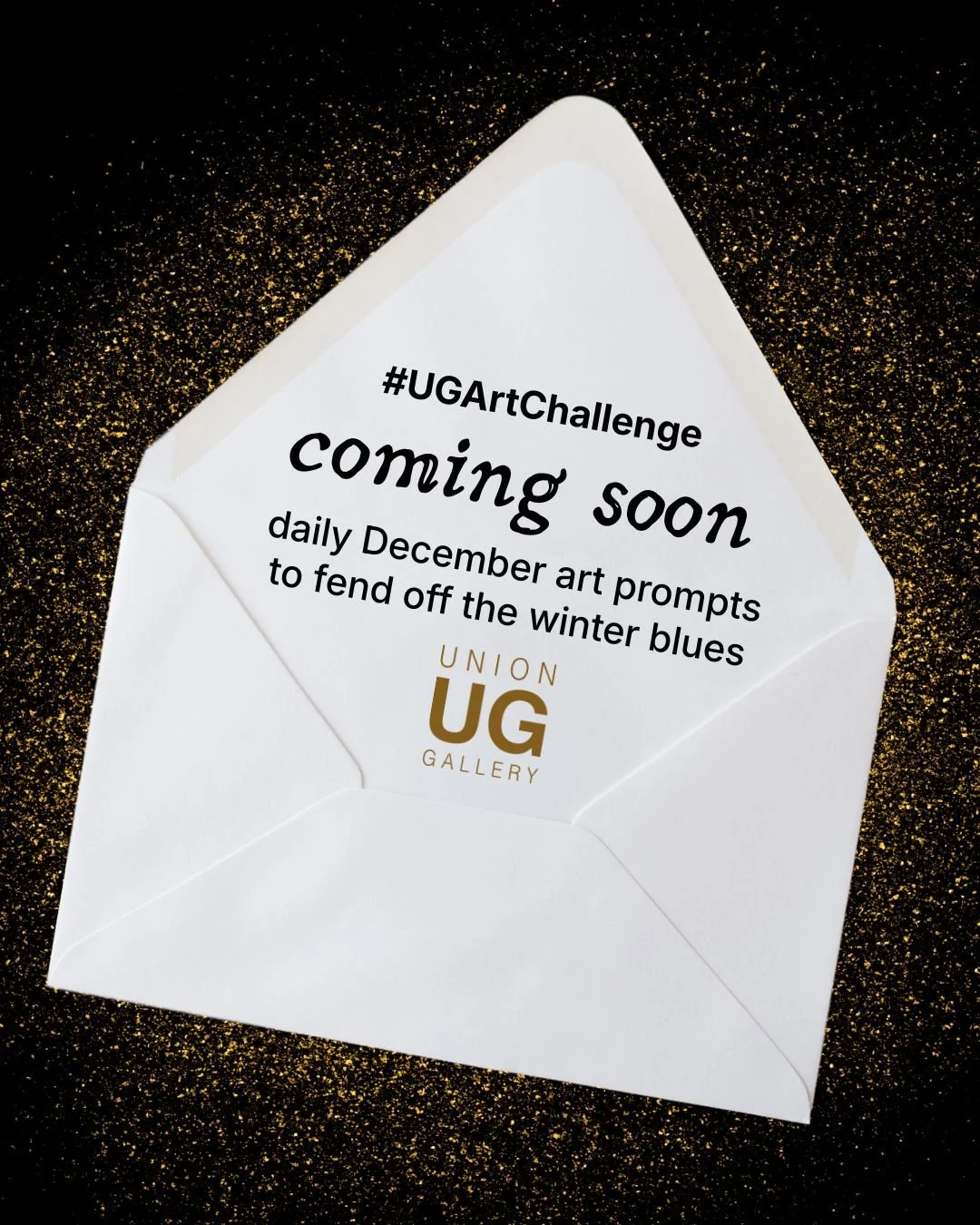 Each day in December, Union Gallery will post an art prompt on Instagram. (These prompts will often be silly, and they’ll always include the letters “U” and “G”.) You’re invited to draw, paint, collage, write, sculpt, sing, dance, bake, photograph, make a zine, or otherwise create artwork based on the prompt!